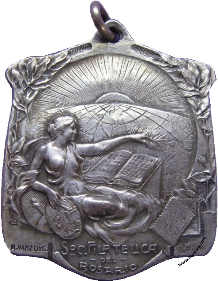 Anverso: SOC. FILATELICA / DEL / ROSARIO. Firma: M. VANZO Y C. Campo: [ 800 ] Reverso: 1A. / EXPOSICIÓN / NACIONAL / DICIEMBRE / 1913 Referencia: | |