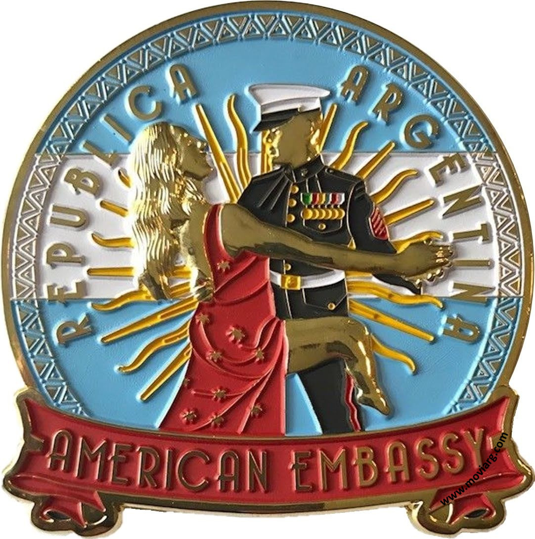 Anverso: REPUBLICA ARGENTINA / AMERICAN EMBASSY Reverso: MARINE SECURITY GUARD DETACHMENT / BUENOS AIRES Referencia: | |