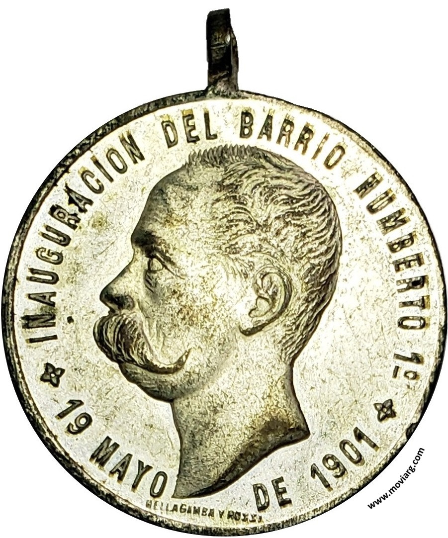 Anverso: INAUGURACION DEL BARRIO HUMBERTO 1° / 19 MAYO DE 1901. Firma: BELLAGAMBA Y ROSSI Reverso: DOCK / F.C.E. / TRAMWAY ELÉCTRICO / B. MITRE / CESAR RAMELLA Referencia: | |