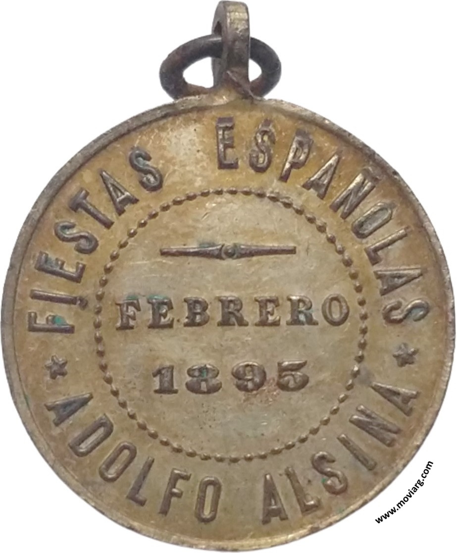 Anverso: SOCIEDAD ESPAÑOLA DE SOCORROS MUTUOS Reverso: FIESTAS ESPAÑOLAS / ADOLFO ALSINA / FEBRERO 1895 Referencia: | |