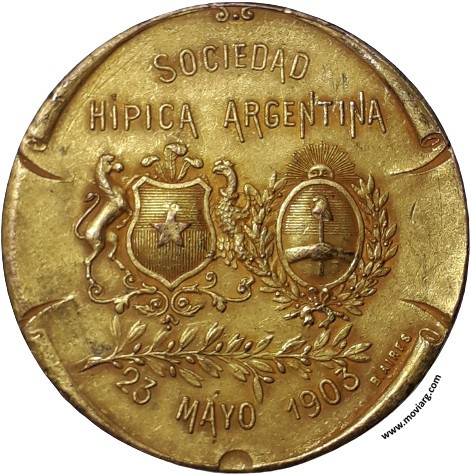 Anverso: SOCIEDAD / HIPICA ARGENTINA / 23 MAYO 1903. Exergo: B. AIRES Reverso: Firma: BELLAGAMBA / Y ROSSI Referencia: | |