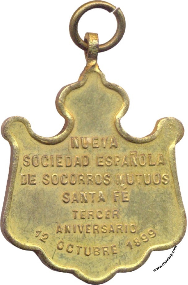 Anverso: Reverso: NUEVA / SOCIEDAD ESPAÑOLA / DE SOCORROS MUTUOS / SANTA FÉ / TERCER / ANIVERSARIO / 12 OCTUBRE 1899 Referencia: | |