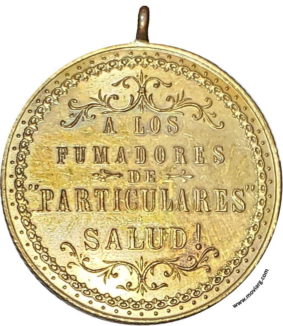 Anverso: JUAN POSSE Y CA. BUENOS AIRES / RIVADAVIA 1122 Reverso: A LOS / FUMADORES / DE / " PARTICULARES " / SALUD ! Canto: Estriado Recto Referencia: | |