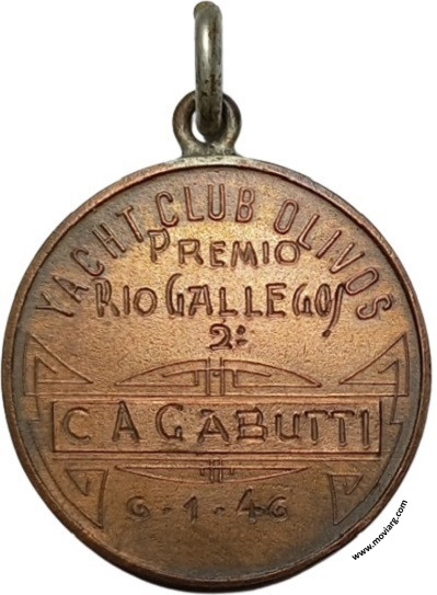 Anverso: Firma: PASTORINO Y SALA Reverso: YACHT CLUB OLIVOS / [ PREMIO ] / [ RIO GALLEGOS ] / [ 2° ] / [ C A GABUTTI ] / [ 6-1-46 ] Referencia: | |