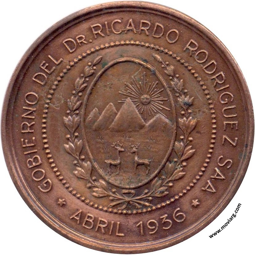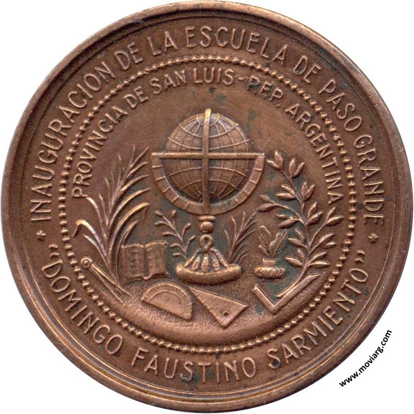 Anverso: GOBIERNO DEL DR. RICARDO RODRIGUEZ SAA / ABRIL 1936 Reverso: INAUGURACION DE LA ESCUELA DE PASO GRANDE / " DOMINGO FAUSTINO SARMIENTO " / PROVINCIA DE SAN LUIS - REP. ARGENTINA Referencia: | |