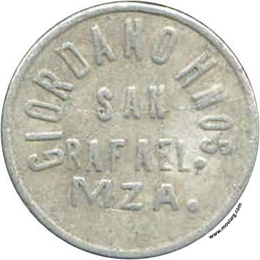 Anverso: 1 / M T Reverso: GIORDANO HNOS. / SAN / RAFAEL / MZA. Referencia: | |