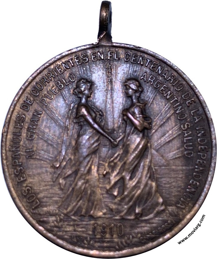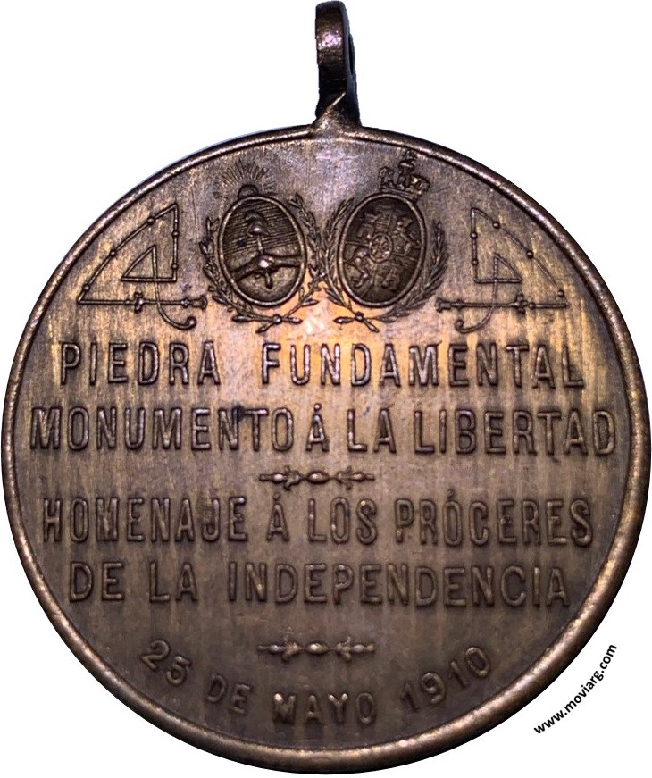 Colección Magnin Anverso: LOS ESPAÑOLES DE CORRIENTES EN EL CENTENARIO DE LA INDEPENDENCIA / AL GRAN PUEBLO / ARGENTINO SALUD / 1910. Firma: C. Y AF. ROSSIReverso: PIEDRA FUNDAMENTAL / MONUMENTO Á LA LIBERTAD / HOMENAJE Á LOS PRÓCERES / DE LA INDEPENDENCIA / 25 DE MAYO 1910 Referencia: | |