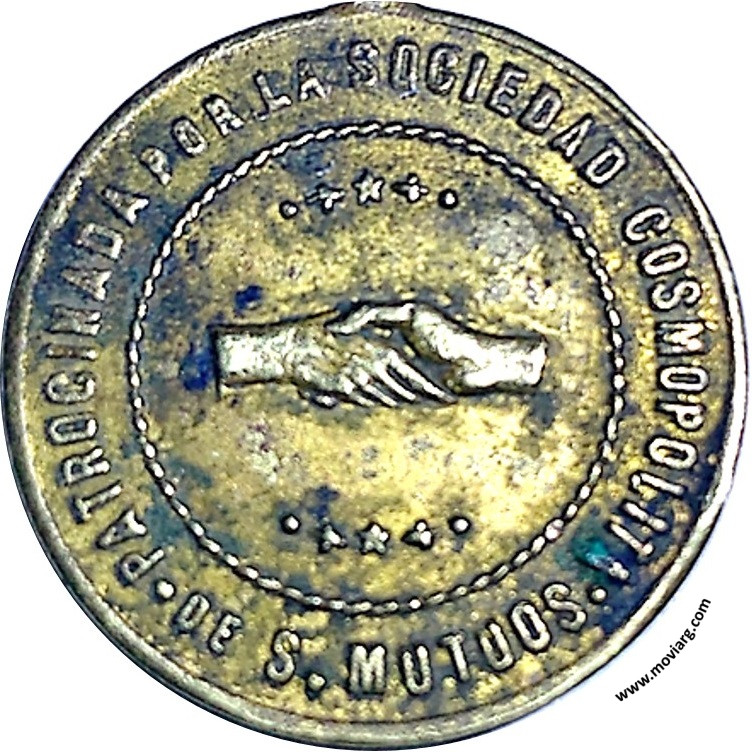 Colección Magnin Anverso: PATROCINADA POR LA SOCIEDAD COSMOPOLITA / DE S. MUTUOSReverso: RECUERDO DE LA 2A. ROMERIA FILANTROPICA / 15 - 16 - 17 / MARZO / 1896 / SAN VICENTE Referencia: | |
