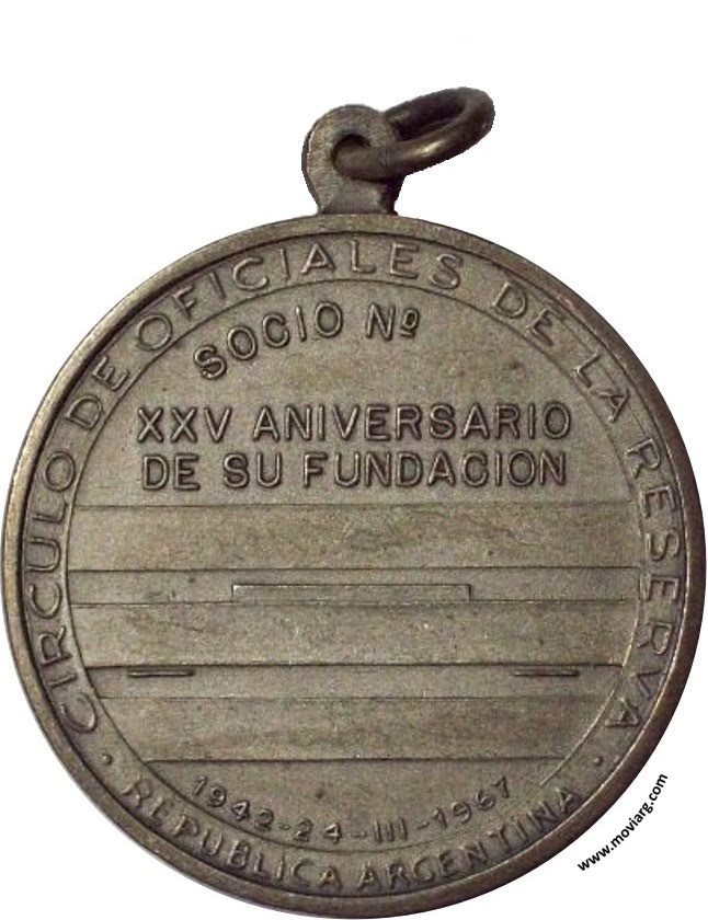 Anverso: Firma: GOTTUZZO Y PIANA Reverso: CIRCULO DE OFICIALES DE LA RESERVA / REPUBLICA ARGENTINA / SOCIO N° / XXV ANIVERSARIO / DE SU FUNDACION / 1942 - 24 - III - 1967 Referencia: | |