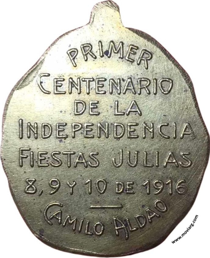 Anverso: Firma: GOTTUZZO Y CA. Reverso: PRIMER / CENTENARIO / DE LA / INDEPENDENCIA / FIESTAS JULIAS / 8, 9 Y 10 DE 1916 / CAMILO ALDAO Referencia: | |