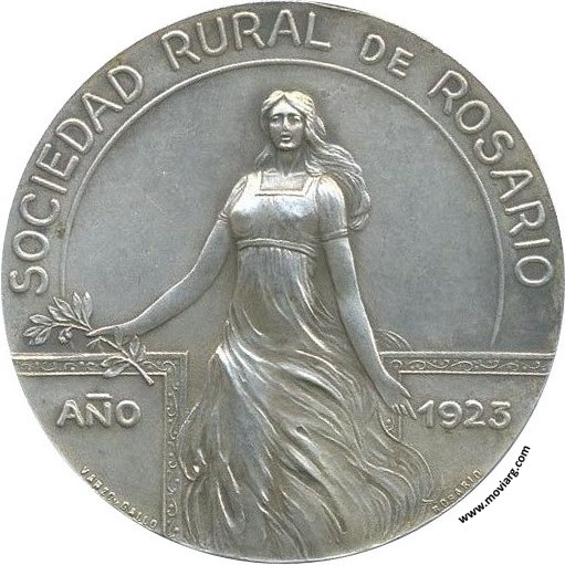 Anverso: SOCIEDAD RURAL DE ROSARIO / AÑO / 1923. Firma: VANZO Y GALLO / ROSARIO Reverso: EXPOSICION NACIONAL / DE GANADERIA Referencia: | |
