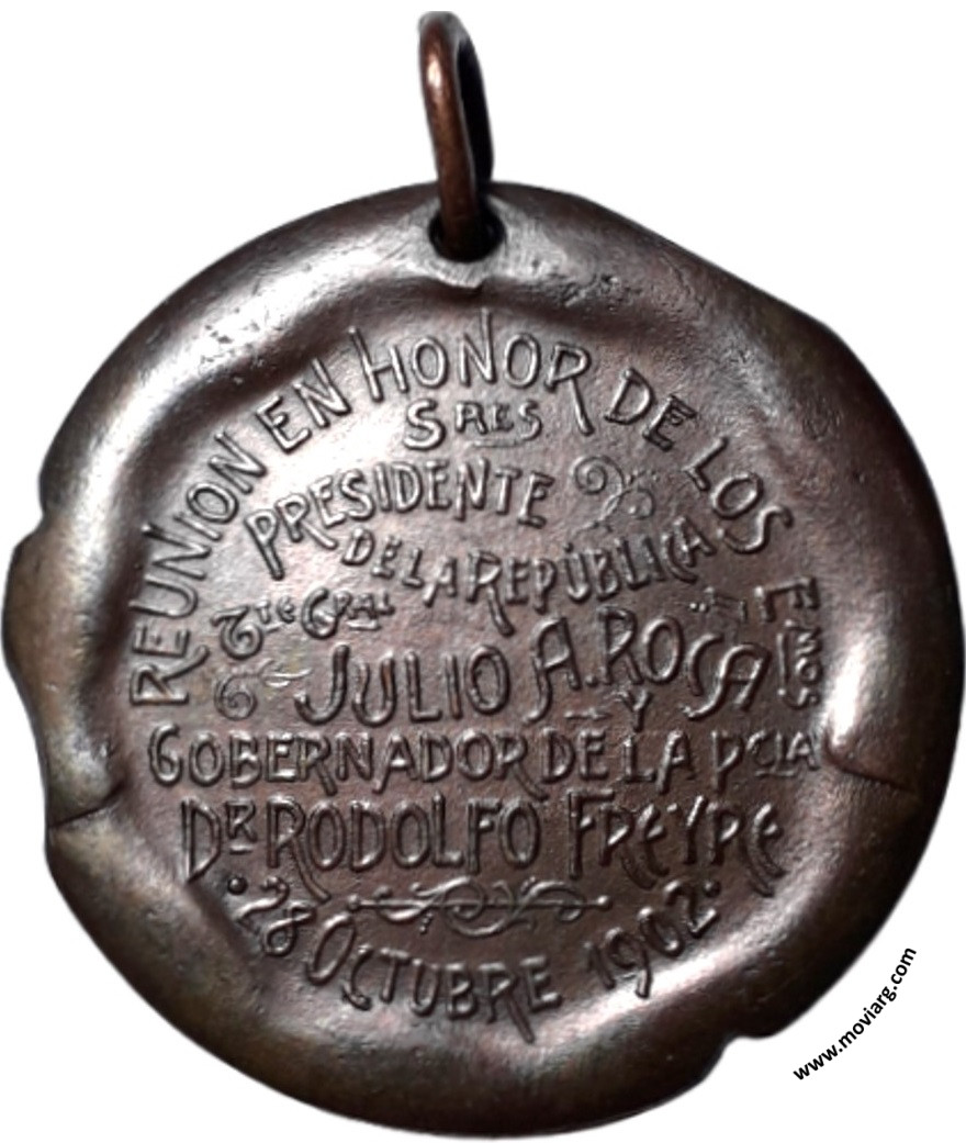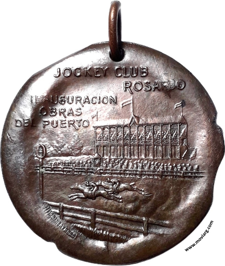 Anverso: JOCKEY CLUB / ROSARIO / INAUGURACION / OBRAS / DEL PUERTO. Firma: BELLAGAMBA Y ROSSI Reverso: REUNION EN HONOR DE LOS EMOS. / SRES. / PRESIDENTE / DE LA REPÚBLICA / TTE. GRAL. / JULIO A. ROCA / Y / GOBERNADOR DE LA PCIA. / DR. RODOLFO FREYRE / 28 OCTUBRE 1902 Referencia: | |