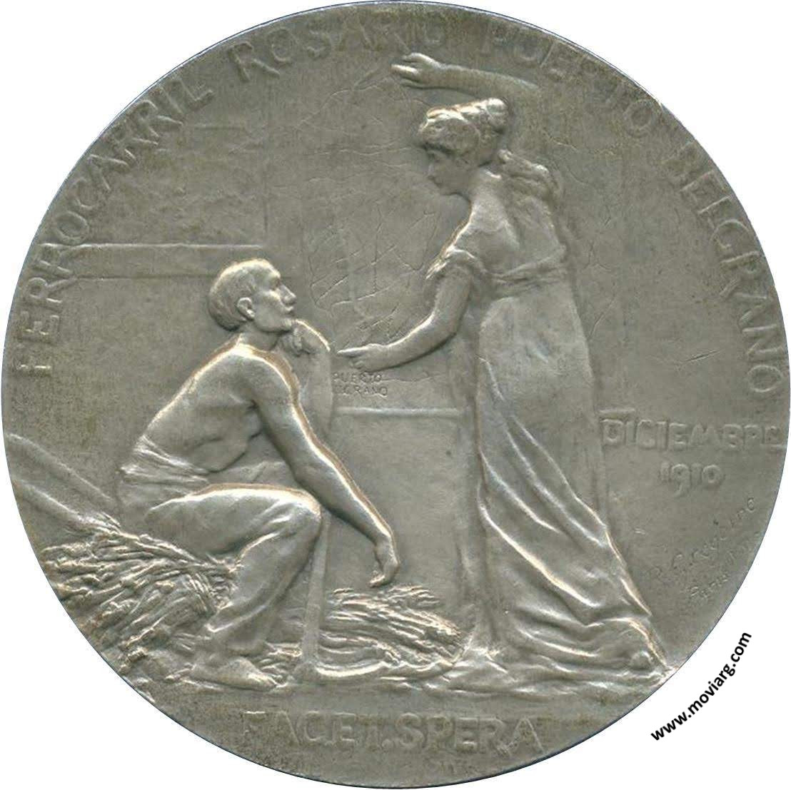 | Año: 1910 Ferrocarriles Metal: Plata - Peso: 86.66gr - Módulo: 60.13mm - Espesor: 3.28mm - Rotación: 12hrs Grabador: R. Gregoire | |