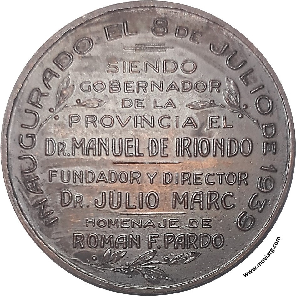 Anverso: MUSEO HISTORICO PROVINCIAL / ROSARIO. Firma: TROIANO TROIANI Reverso: INAUGURADO EL 8 DE JULIO DE 1939 / SIENDO / GOBERNADOR / DE LA / PROVINCIA EL / DR. MANUEL DE IRIONDO / FUNDADOR Y DIRECTOR / DR. JULIO MARC / HOMENAJE DE / ROMAN F. PARDO Canto: Liso. [ XL-30 ] Referencia: | |