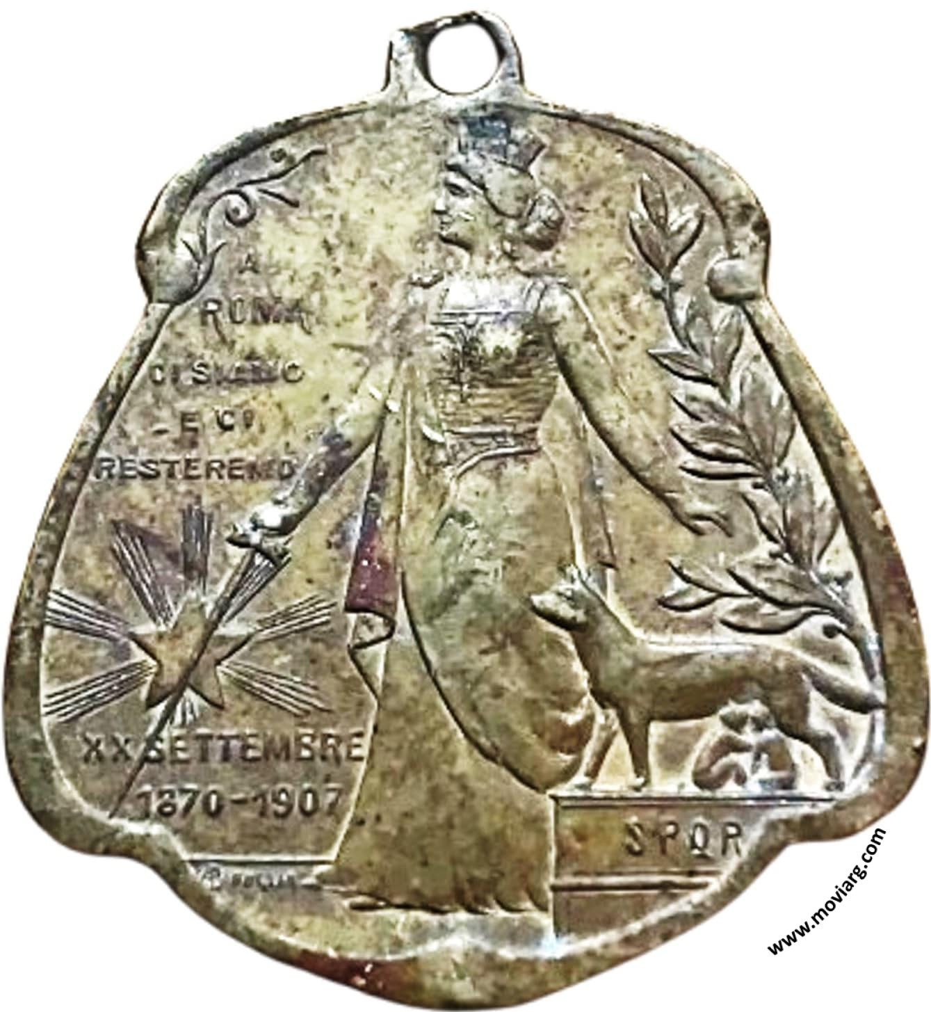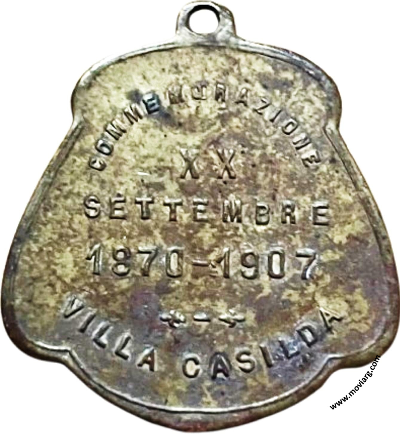 Anverso: A / ROMA / CI SIAMO / E CI / RESTEREMO / XX SETTEMBRE / 1870 - 1907. Firma: A. BIDOGLIA. Campo: S.P.Q.R. Reverso: COMMEMORAZIONE / XX / SETTEMBRE / 1870 - 1907 / VILLA CASILDA Referencia: | |