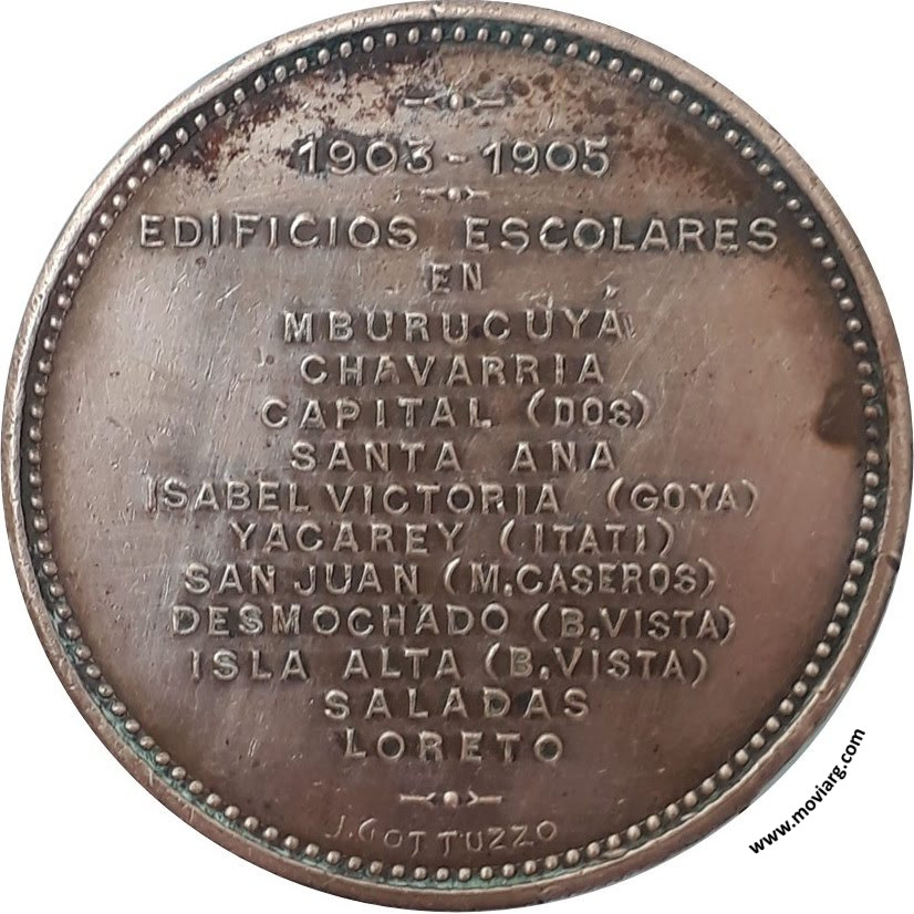 Anverso: PROVINCIA DE CORRIENTES ( R.A. ) / CONSEJO S. DE EDUCACION Reverso: 1903 - 1905 / EDIFICIOS ESCOLARES / EN / MBURUCUYÁ / CHAVARRIA / CAPITAL (DOS) / SANTA ANA / ISABEL VICTORIA (GOYA) / YACAREY (ITATI) / SAN JUAN (M. CASEROS) / DESMOCHADO (B. VISTA) / ISLA ALTA (B. VISTA) / SALADAS / LORETO. Firma: J. GOTTUZZO Referencia: | |