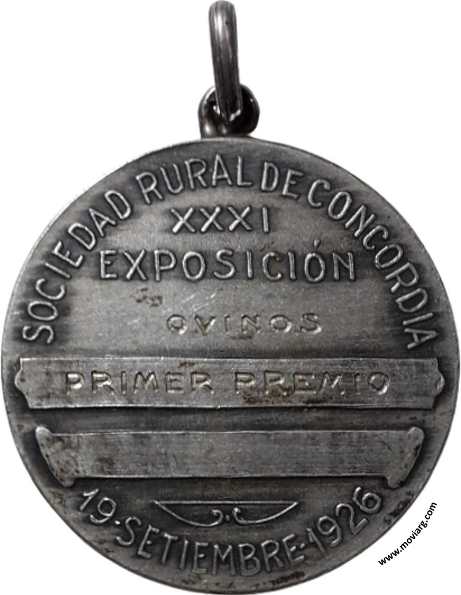 Colección MDS Anverso: SOCIEDAD RURAL / CONCORDIA. Firma: HORTAReverso: SOCIEDAD RURAL DE CONCORDIA / XXXI EXPOSICIÓN / [ OVINOS ] / [ PRIMER PREMIO ] / 19 - SETIEMBRE - 1926 Referencia: | |