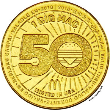 Anverso: 1978 - 1988 Reverso: 1 BIG MAC / MINTED IN USA. Exergo: VALID THRU · VÁLIDO DURANTE · VÁLIDO EM · BERLAKU SAMPAI · VALABLE EN · 2018 | 2018 Canto: Estriado Recto Referencia: | |