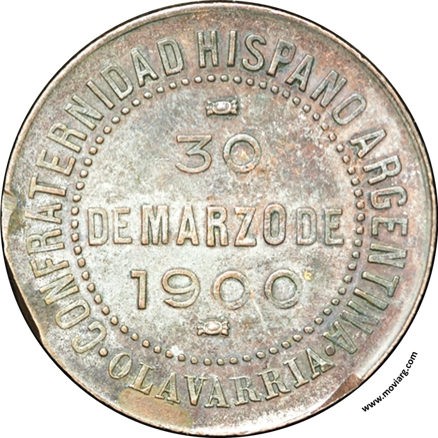 Anverso: Reverso: CONFRATERNIDAD HISPANO ARGENTINA / OLAVARRIA / 30 / DE MARZO DE / 1900 Referencia: | |
