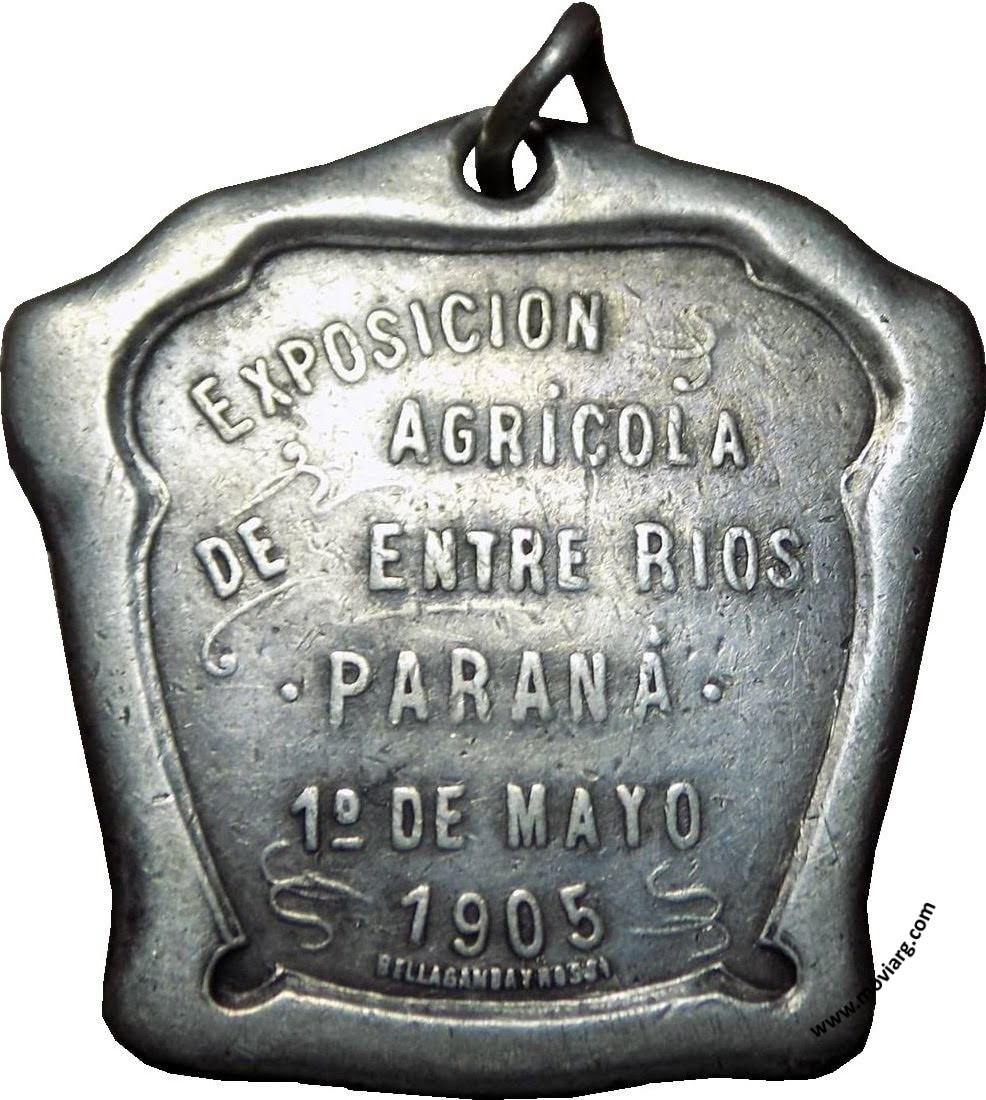 Anverso: Reverso: EXPOSICION / AGRÍCOLA / DE / ENTRE RIOS / PARANÁ / 1º DE MAYO / 1905. Firma: BELLAGAMBA Y ROSSI Referencia: | |