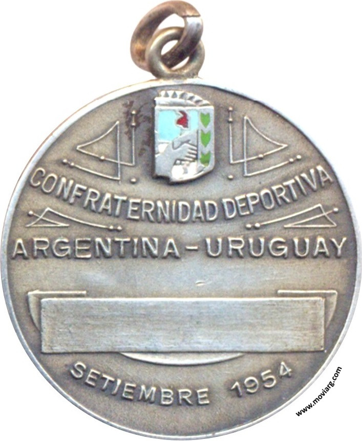 Anverso: FEDERACION ARGENTINA DE PELOTA / BUENOS AIRES. Campo: F.A. / D. PE. Reverso: CONFRATERNIDAD DEPORTIVA / ARGENTINA - URUGUAY / SETIEMBRE 1954 Referencia: | |
