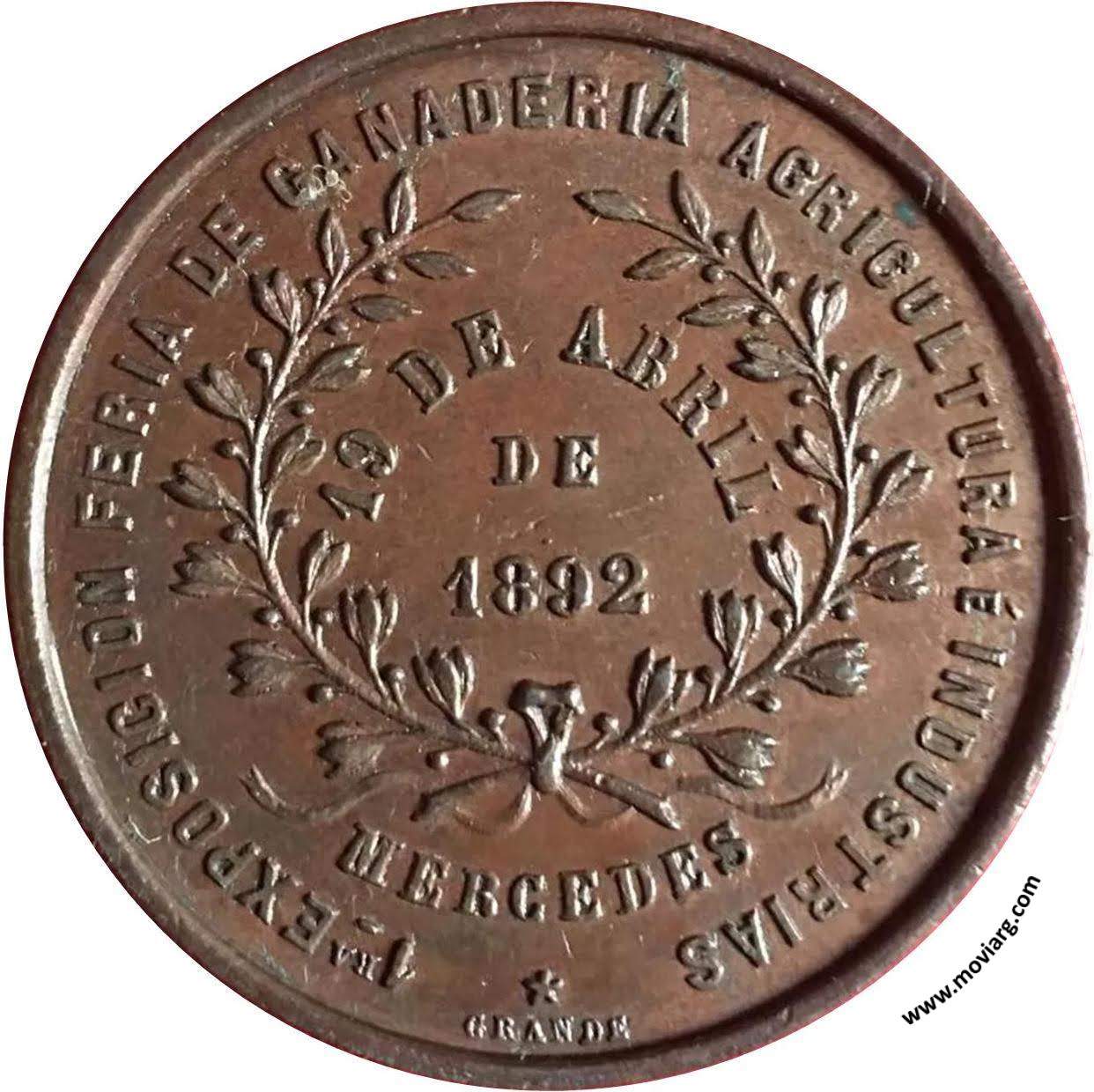 | Año: 1892 Exposiciones Metal: Cobre - Peso: 24gr - Módulo: 40mm Grabador: Rosario Grande | |