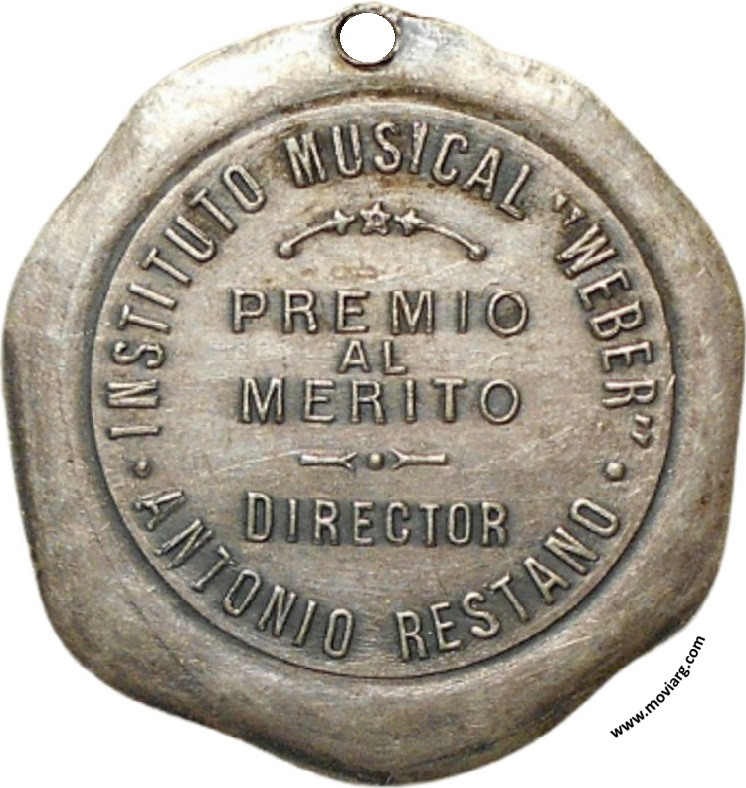 Anverso: Reverso: INSTITUTO MUSICAL " WEBER " / PREMIO / AL / MERITO / DIRECTOR / ANTONIO RESTANO Referencia: | |