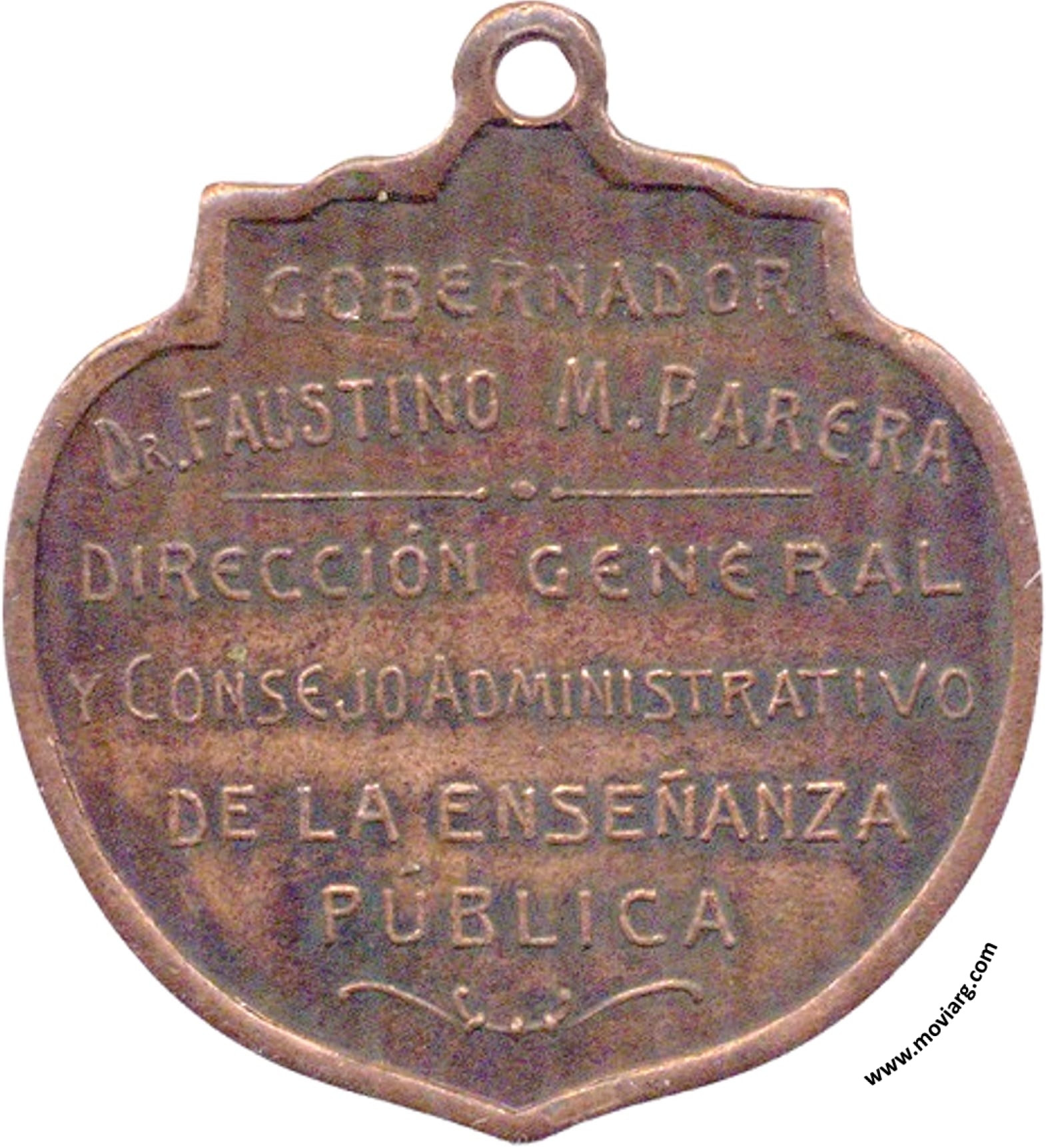 Anverso: " ESCUELA RIVADAVIA " / PIEDRA FUNDAMENTAL / PARANÁ / OCTUBRE DE 1908. Firma: HORTA Y CIA. Reverso: GOBERNADOR / DR. FAUSTINO M. PARERA / DIRECCIÓN GENERAL / Y CONSEJO ADMINISTRATIVO / DE LA ENSEÑANZA / PÚBLICA Referencia: | |