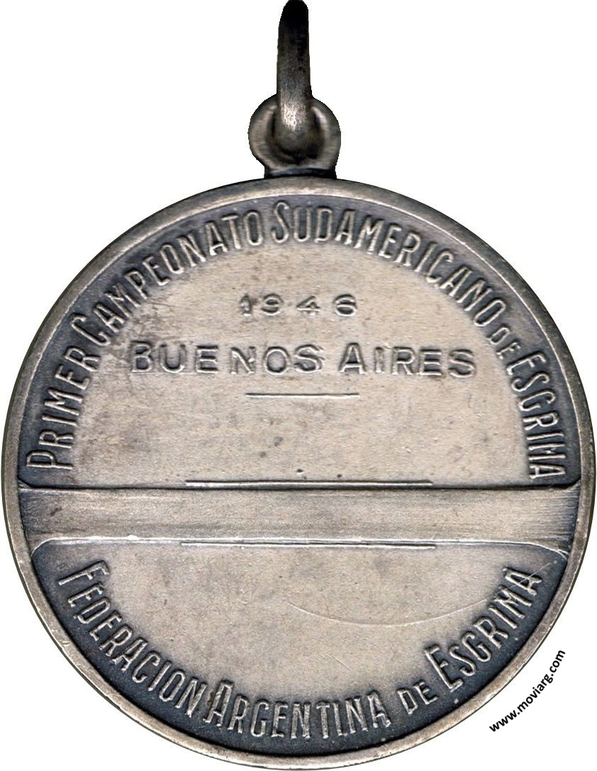 Anverso: CONFEDERACION SUDAMERICANA DE ESGRIMA. Exergo: [ 900 ] Reverso: PRIMER CAMPEONATO SUDAMERICANO DE ESGRIMA / 1946 / BUENOS AIRES / FEDERACION ARGENTINA DE ESGRIMA Referencia: | |