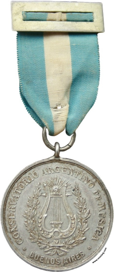 Colección Emilio y Nina Perucchetti Anverso: CONSERVATORIO ARGENTINO DE MUSICA / BUENOS AIRESReverso: EXAMENES Y CONCURSOS / DE 1896 / MENCION / ESPECIAL Referencia: | |