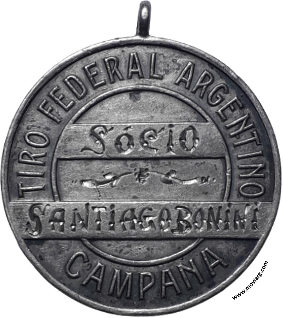 Anverso: Campo: PRO PATRIA Reverso: TIRO FEDERAL ARGENTINO / [ SOCIO ] / [ SANTIAGO BONINI ] / CAMPANA Referencia: | |