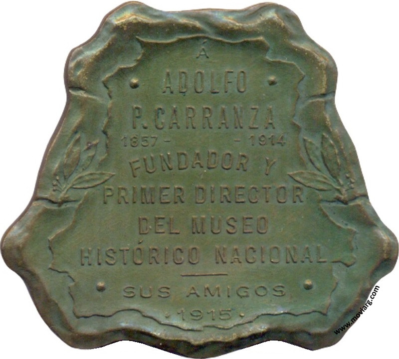 Anverso: Firma: CONSTANTE ROSSI Reverso: Á / ADOLFO / P. CARRANZA / 1857 - - 1914 / FUNDADOR Y / PRMER DIRECTOR / DEL MUSEO / HISTÓRICO NACIONAL / SUS AMIGOS / 1915 Referencia: | |