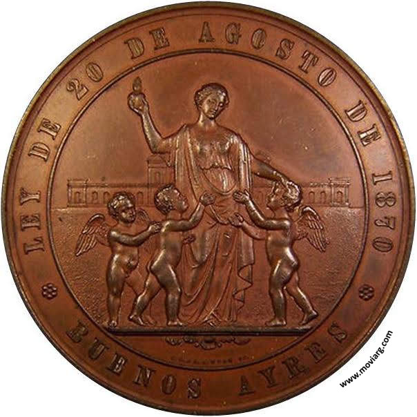 Senip (MHS 259) Anverso: LEY DE 20 DE AGOSTO DE 1870 / BUENOS AYRES. Firma: J.S. & A.B. WYON SC.Reverso: ASILO DE HUERFANOS Y ESCUELA DE ARTES Y OFICIOS / GOBERNADOR / DN. EMILIO CASTRO / MINISTRO DE GOBIERNO / DR. DN. ANTONIO E. MALAVER / MINISTRO DE HACIENDA / DN PEDRO AGOTE Canto: Dr. D. Aurelio Prado y Rojas: "Cátalogo de las monedas y medallas del Museo de Buenos Aires" 1874 p325. Referencia: | |