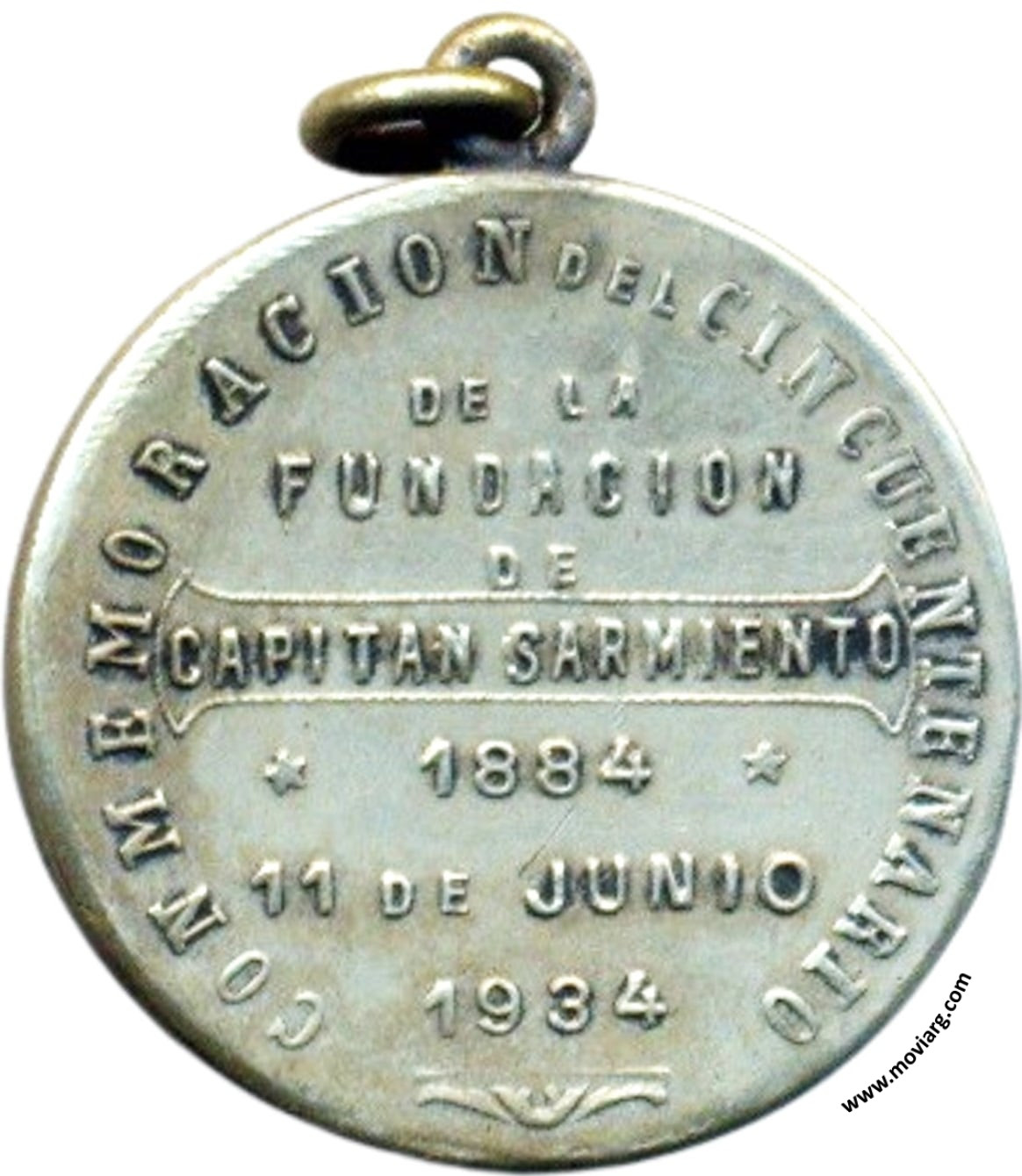 Anverso: DOMINGO FIDEL SARMIENTO Reverso: CONMEMORACION DEL CINCUENTENARIO / DE LA / FUNDACION / DE / CAPITAN SARMIENTO / 1884 / 11 DE JUNIO / 1934 Referencia: | |