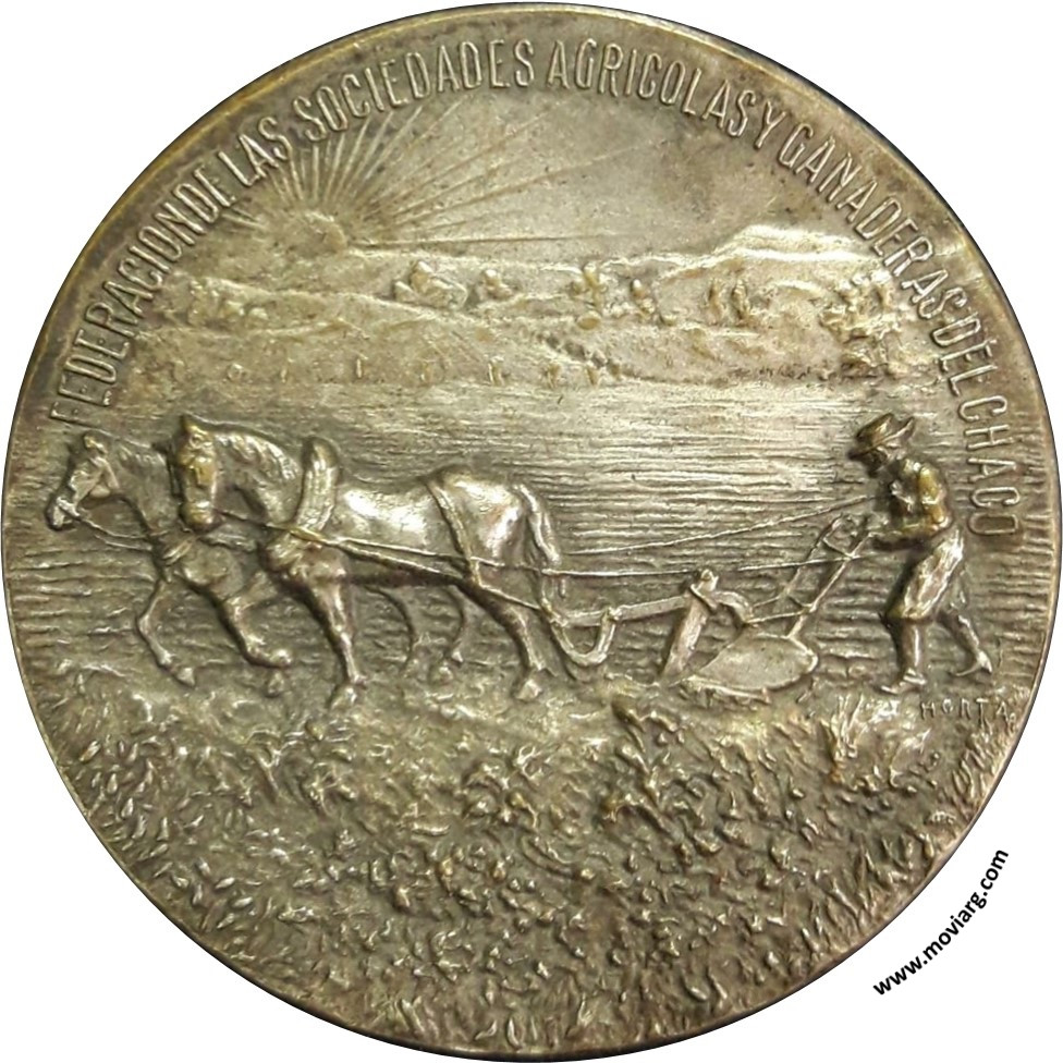 Colección Carlos Bravo Anverso: FEDERACION DE LAS SOCIEDADES AGRICOLAS Y GANADERAS DEL CHACO. Firma: HORTAReverso: PRIMER / CONCURSO ALGODONERO / 9 DE JULIO DE 1920 / RESISTENCIA Referencia: | |