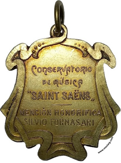 Anverso: C. SAINT SAËNS. Firma: A. BIDOGLIA Reverso: CONSERVATORIO / DE MÚSICA / "SAINT SAËNS" / MENCIÓN HONORIFICA / [ SILVIO FORNASARI ] Referencia: | |