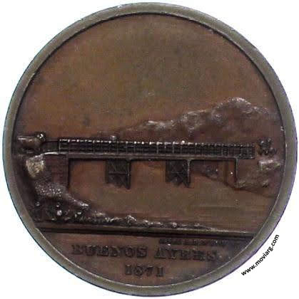 Anverso: BUENOS AYRES / 1871. Firma: J.S. & A.B. WYON SC. Reverso: PUENTES EN LA CAMPAÑA / LEY DE 10 DE JUNIO DE 1870 / GOBERNADOR / DN. EMILIO CASTRO / MINISTRO DE GOBIERNO / DR. DN. ANTONIO E. MALAVER / MINISTRO DE HACIENDA / DN. PEDRO AGOTE Referencia: ROSA-295/68 PRADO-1945 | |