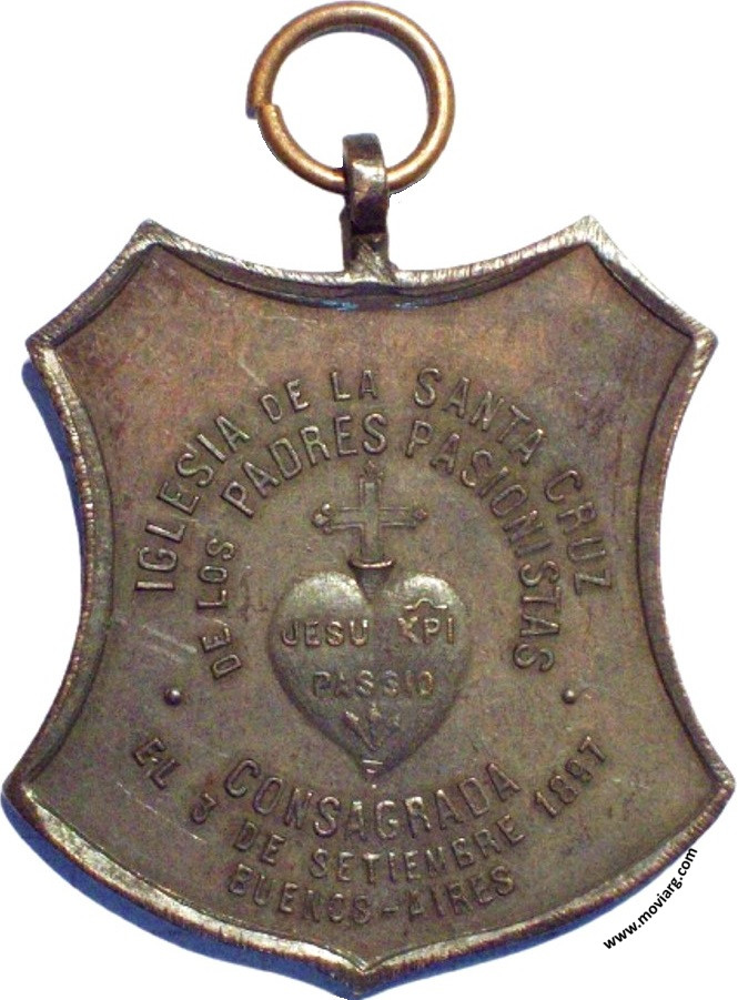 Anverso: Firma: ORZALI B. Y C. Reverso: IGLESIA DE LA SANTA CRUZ / DE LOS PADRES PASIONISTAS / CONSAGRADA / EL 3 DE SETIEMBRE 1897 / BUENOS - AIRES. Campo: JESU XPI / PASSIO Referencia: | |