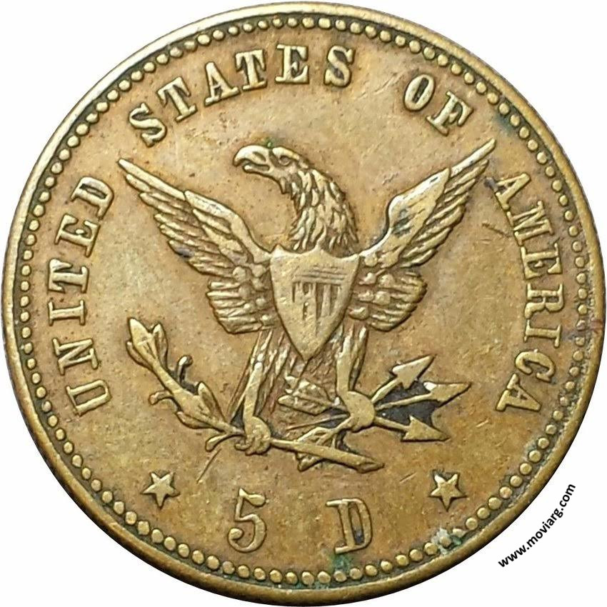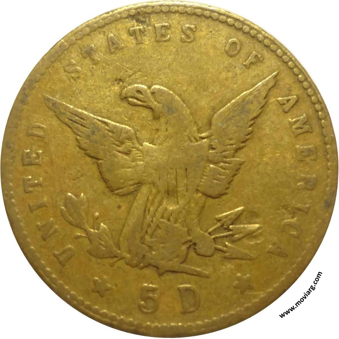 Anverso: UN ARGENTINO. 9 DOS. FINO. LIBERTAD. 5 PESOS Reverso: UNITED STATES OF AMERICA / 5D Canto: Estriado recto Referencia: | |