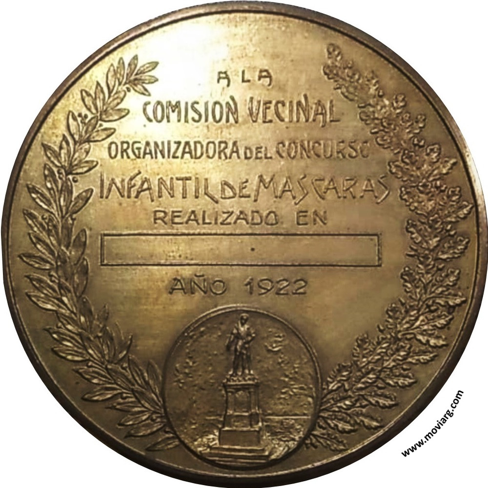 Anverso: PREMIO INTENDENCIA MUNICIPAL / BUENOS AIRES. Firma: GOTTUZZO Y PIANA Reverso: A LA / COMISION VECINAL / ORGANIZADORA DEL CONCURSO / INFANTIL DE MASCARAS / REALIZADO EN / AÑO 1922 Referencia: | |