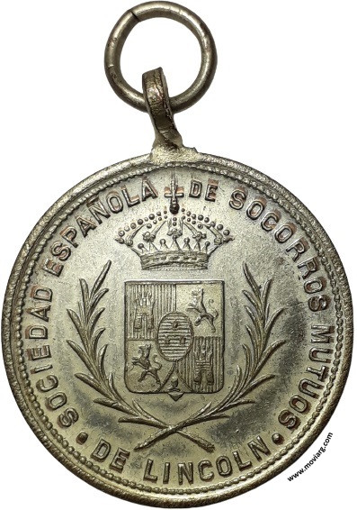 Anverso: SOCIEDAD ESPAÑOLA DE SOCORROS MUTUOS / DE LINCOLN Reverso: ROMERIAS ESPAÑOLAS / 12 OCTUBRE / DE / 1892 Referencia: | |