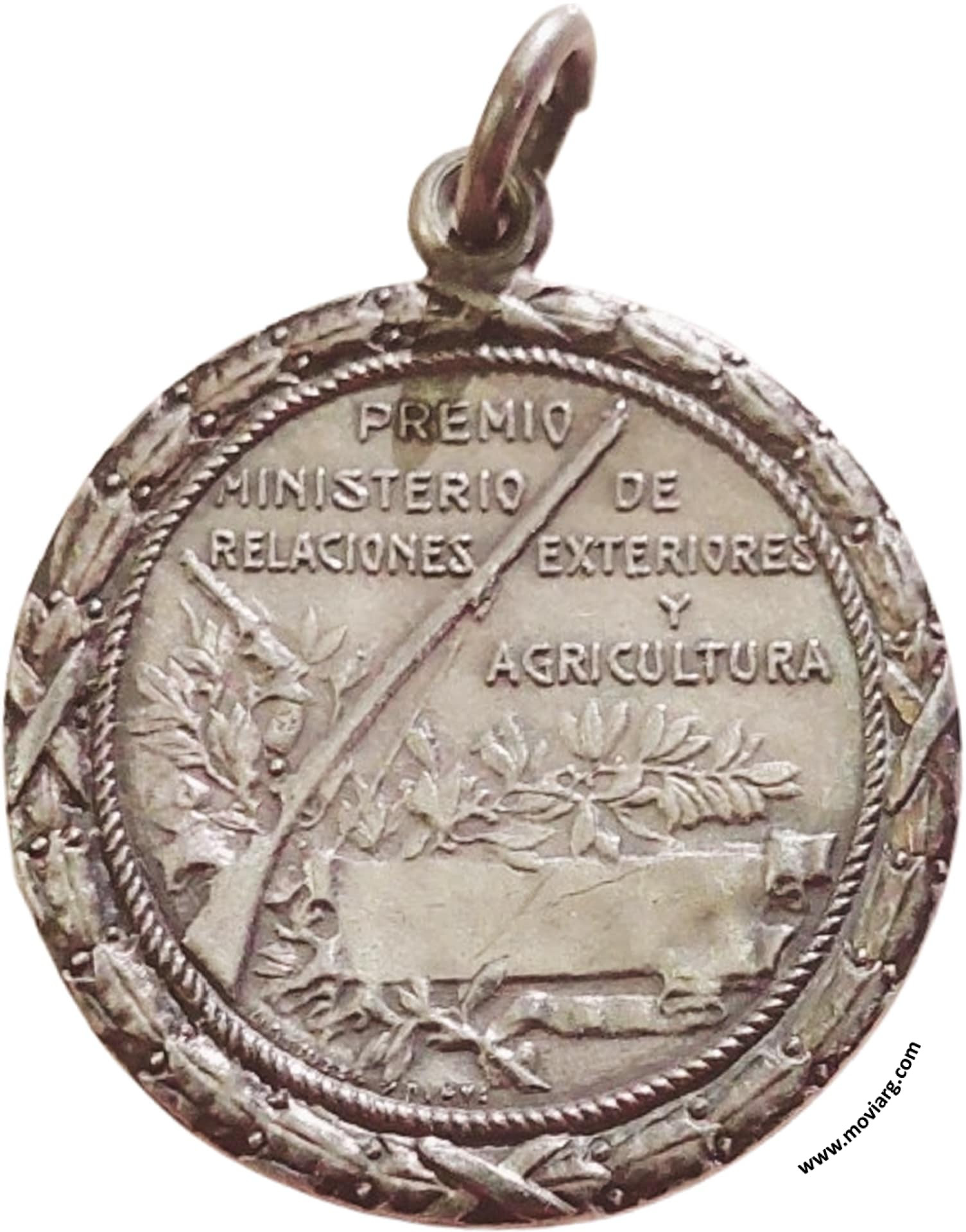 Anverso: Campo: PATRIA Reverso: PREMIO / MINISTERIO DE / RELACIONES EXTERIORES / Y / AGRICULTURA. Firma: GOTTUZZO Y PIANA Referencia: | |