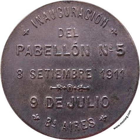 Anverso: HOSPITAL DE LA SOCIEDAD / PROTECTORA / DE LOS POBRES. Firma: C. Y AF. ROSSI Reverso: INAUGURACIÓN / DEL / PABELLÓN N°5 / 8 SETIEMBRE 1911 / 9 DE JULIO / BS. AIRES Referencia: | |