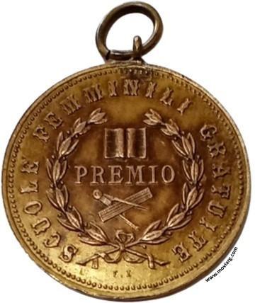 | Año: (1888) Premio al Mérito y Aplicación Metal: Bronce - Peso: 13.37gr - Módulo: 32.65mm - Espesor: 2.3mm - Rotación: 12hrs Grabador: Fabricio Zuccotti | |