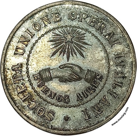 Anverso: SOCIETÀ UNIONE OPERAI ITALIANI / BUENOS AIRES Reverso: SCUOLE FEMMINILI GRATUITE / PREMIO. Firma: F.Z. Referencia: | |