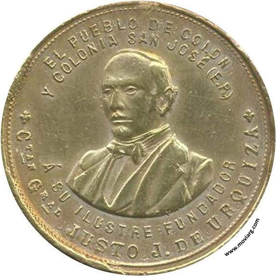 Anverso: EL PUEBLO DE COLON / Y COLONIA SAN JOSÉ (E.R.) / Á SU ILUSTRE FUNDADOR / CTAN. GRAL. JUSTO J. DE URQUIZA. Firma: B. Y R. Reverso: EN CONMEMORACION DEL PRIMER CENTENARIO DE SU NACIMIENTO / ENTRE RIOS / 1801-1901 Referencia: | |