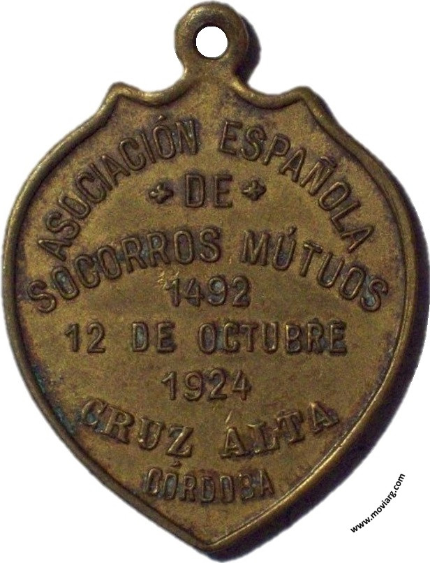 Anverso: FIESTA / DE LA RAZA Reverso: ASOCIACIÓN ESPAÑOLA / DE / SOCORROS MÚTUOS / 1492 / 12 DE OCTUBRE / 1924 / CRUZ ALTA / CÓRDOBA Referencia: | |