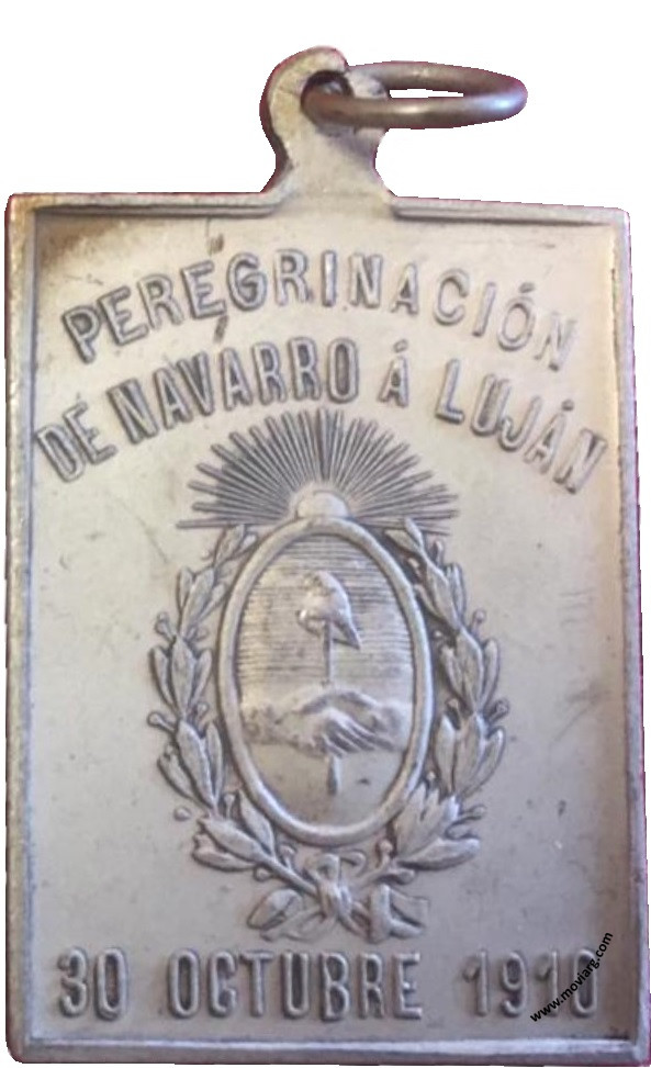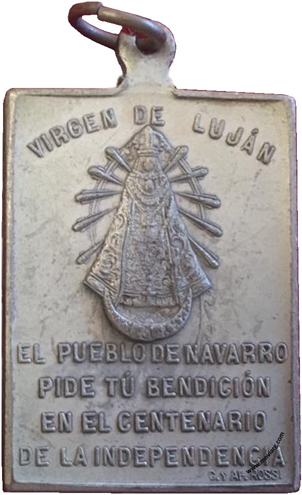 Anverso: PREGRINACIÓN / DE NAVARRO Á LUJÁN / 30 OCTUBRE 1910 Reverso: VIRGEN DE LUJÁN / EL PUEBLO DE NAVARRO / PIDE TÚ BENDICIÓN / EN EL CENTENARIO / DE LA INDEPENDENCIA. Firma: C. Y AF. ROSSI Referencia: | |