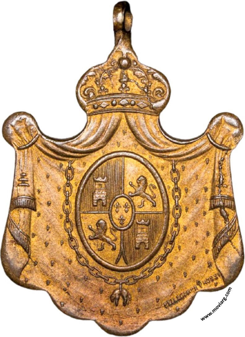 | Año: 1901 Romerías Metal: Bronce - Peso: 7.6gr - Módulo: 28x38mm - Rotación: 12hrs Grabador: José Bellagamba y Constante Rossi | |