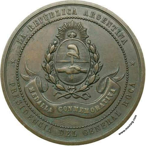 Anverso: LA REPUBLICA ARGENTINA / PRESIDENCIA DEL GENERAL ROCA / MEDALLA CONMEMORATIVA. Firma: R. GRANDE Reverso: EXPOSICION CONTINENTAL / REALIZADA POR EL CLUB / INDUSTRIAL ARGENTINO / BAJO EL PATROCINIO DEL / GOBIERNO NACIONAL / BUENOS AIRES 1882 Canto: Humberto Burzio: "Buenos Aires en la medalla" 1981 p443. Referencia: BURZIO-1280 ROSA-1514 FERRARI-82 (RG) | |